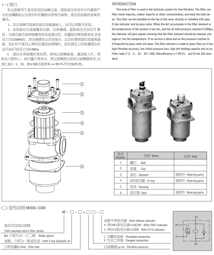 RFA系列微型直回式回油過濾器(新型結構代替LHN系列)