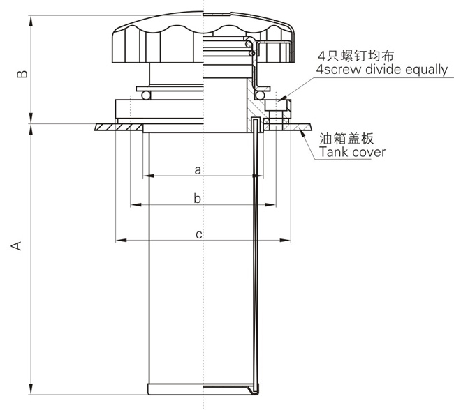 當液壓系統工作時油箱內油面時而上升或下降,上升時由里向外排出空氣,下降時由外向里吸入空氣。為凈化油箱內油液,在油箱蓋板上垂直安裝空氣濾清器,就可以過濾吸入的空氣;同時空氣濾清器又是注油口,注入的新工作油液,須經過濾再進油箱,從而濾除了油液內的臟物顆粒。