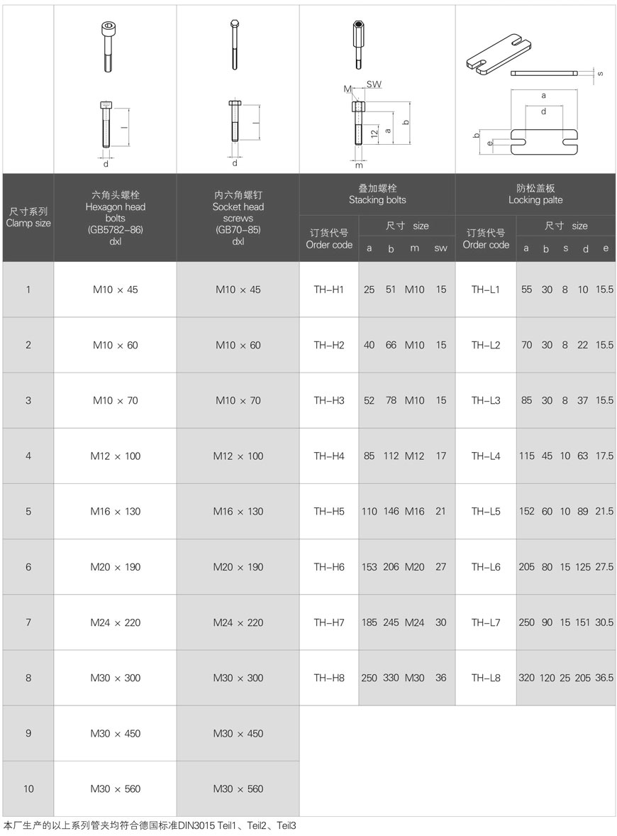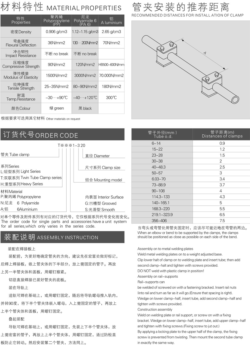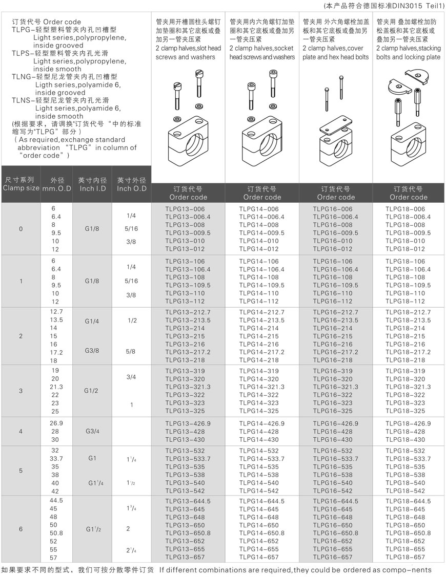 管夾適用范圍 輕型系列管夾應用于6種尺寸系列的普通機械壓力管子,管子外徑Φ6~57mm。 雙聯系列管夾應用于5種尺寸系列的普通機械壓力管子,管子外徑Φ6~42mm。 重型系列管夾應用于8種尺寸系列的高機械壓力管子,管子外徑Φ8~220mm。